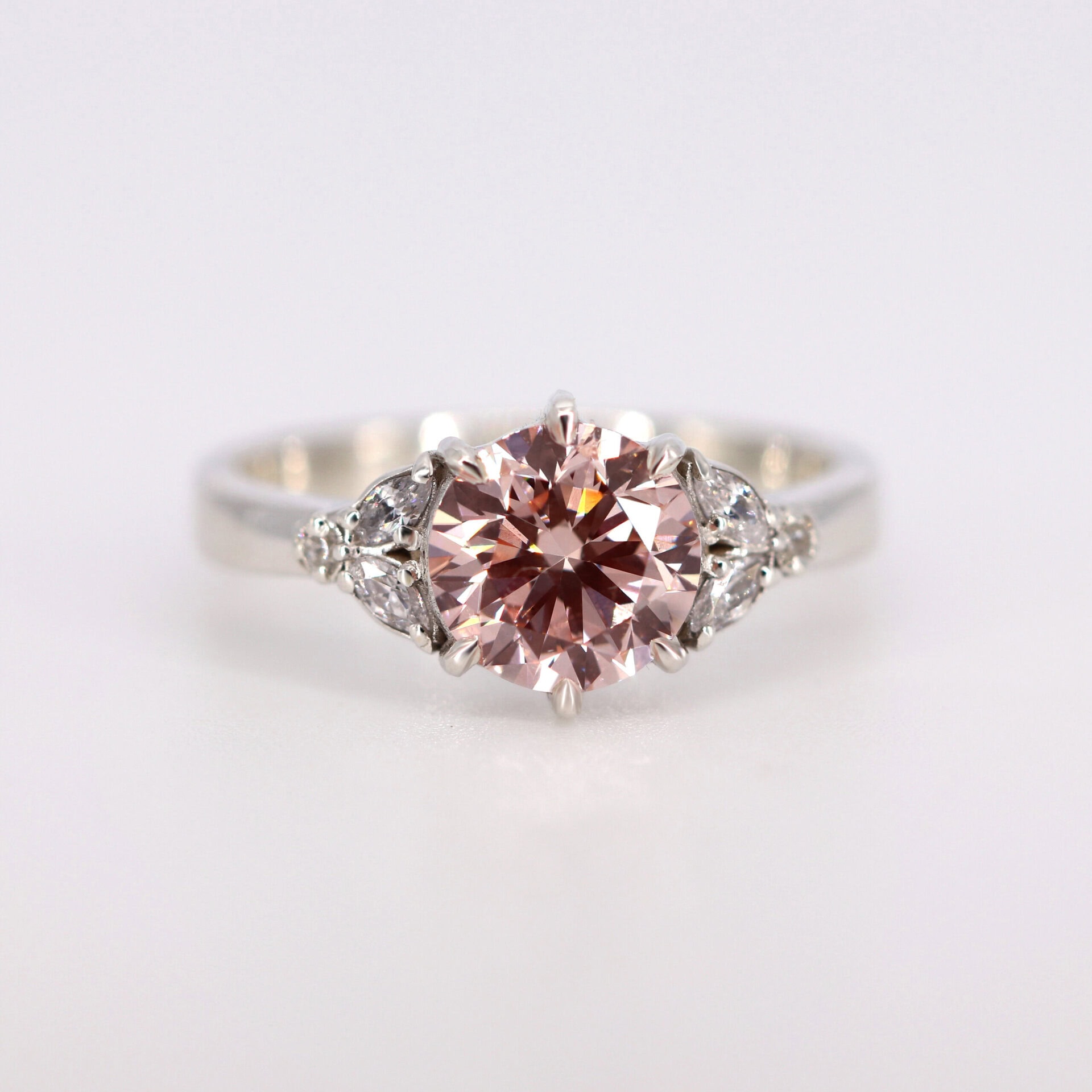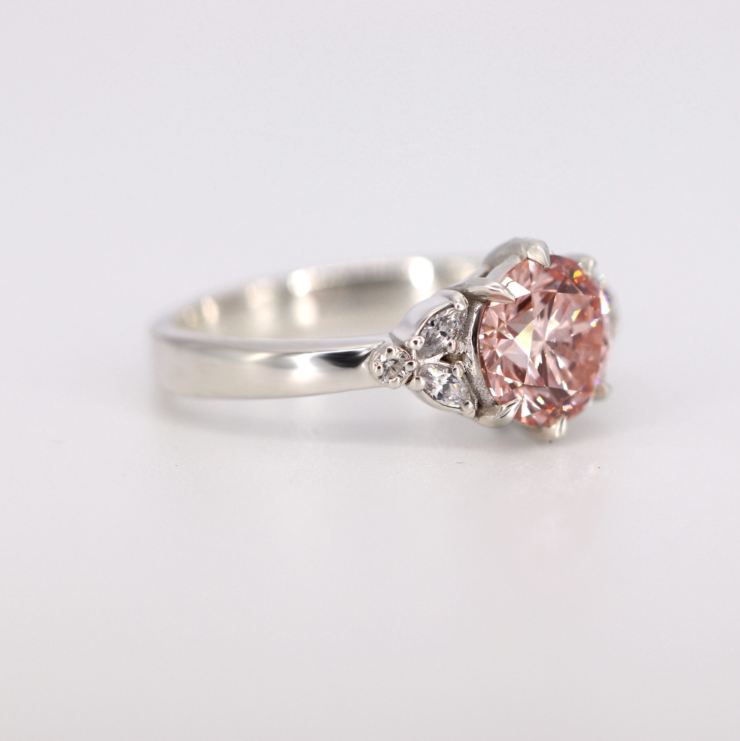 1.5ct Round pink lab grown diamond ring in white gold – Wisteria setting