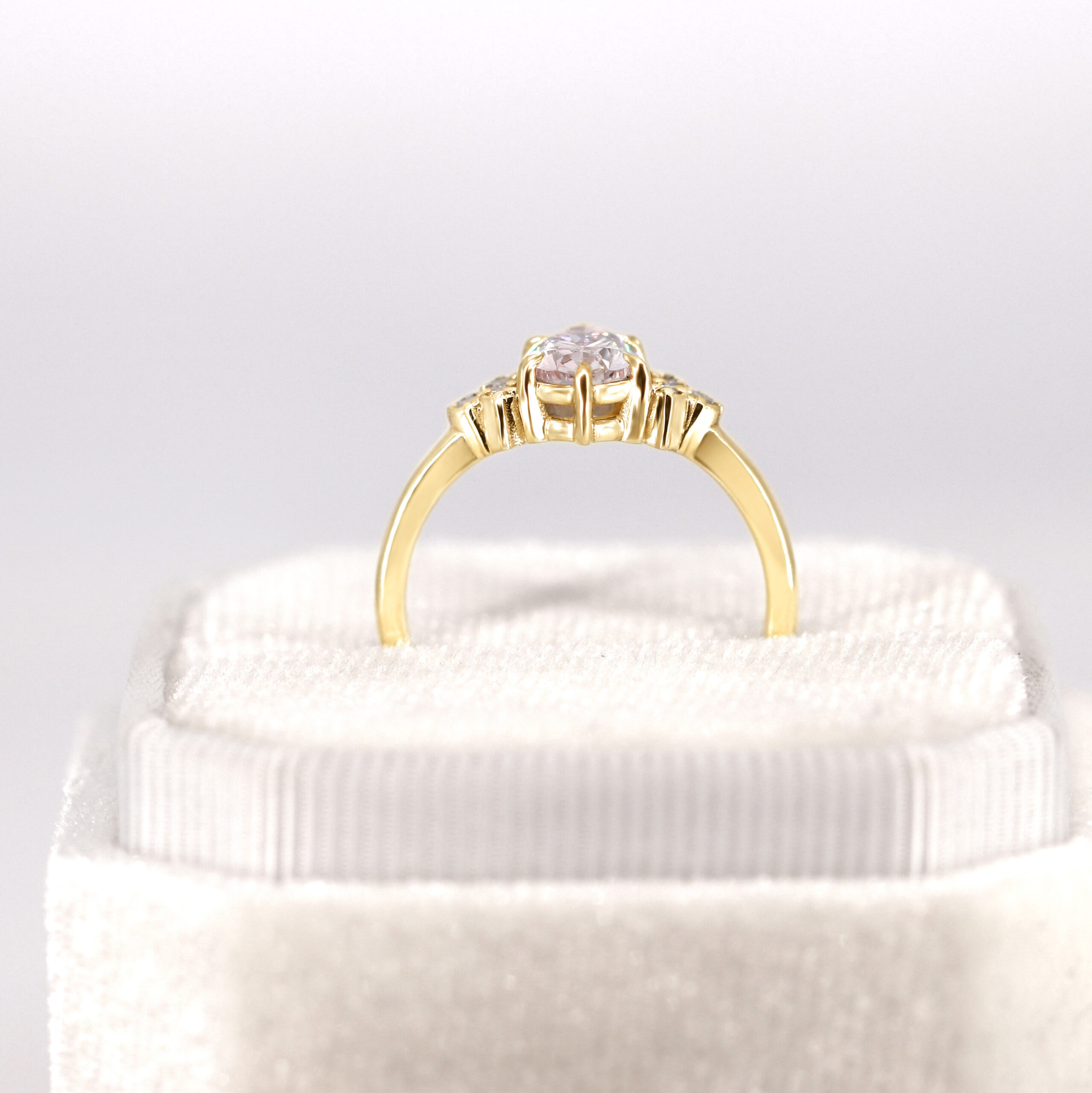 1ct Pink pear shape diamond ring in yellow gold – Willow setting