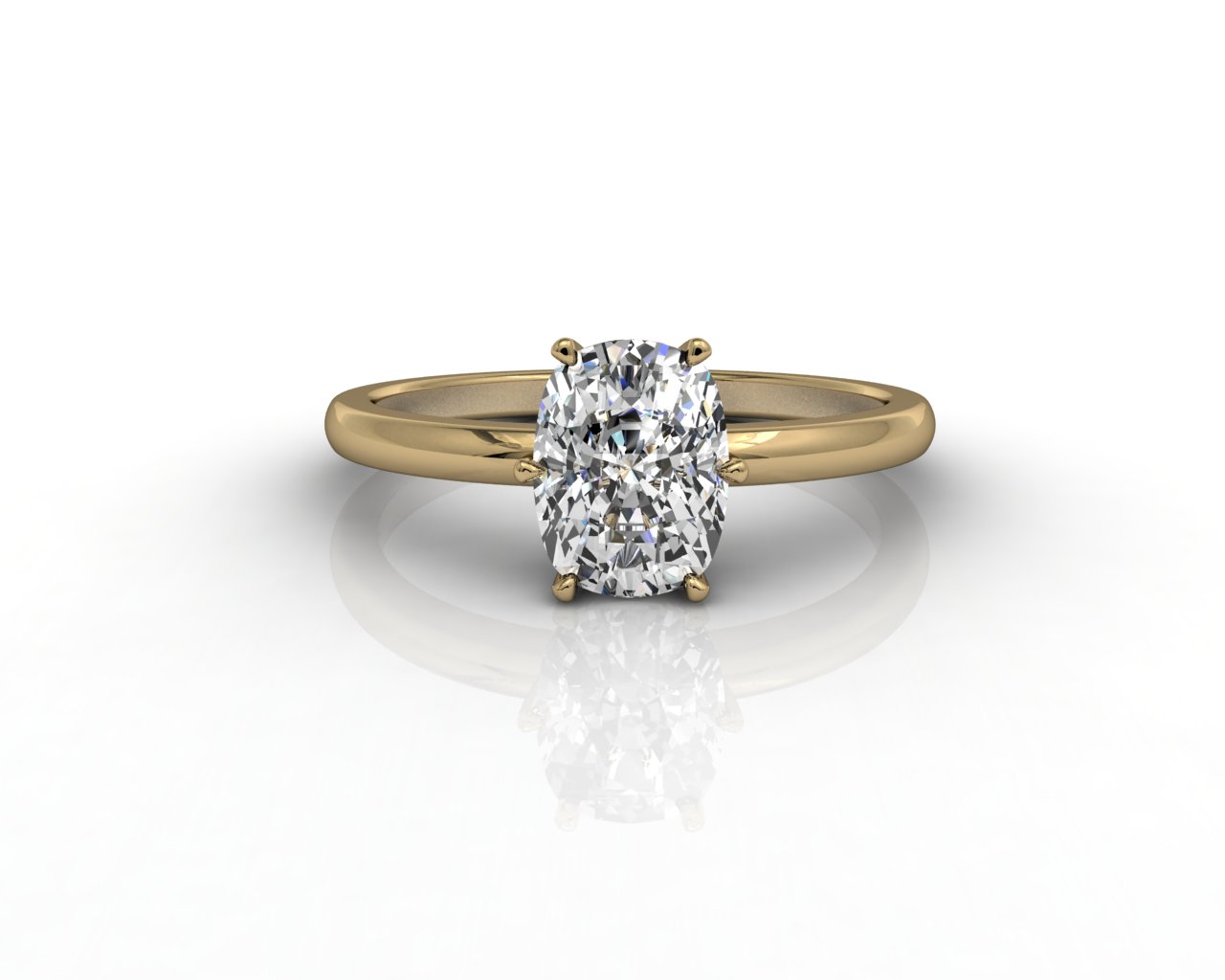 The ring contains a 1ct elongated cushion cut diamond (minimum specifications: H, VS) in a 6 claw setting.