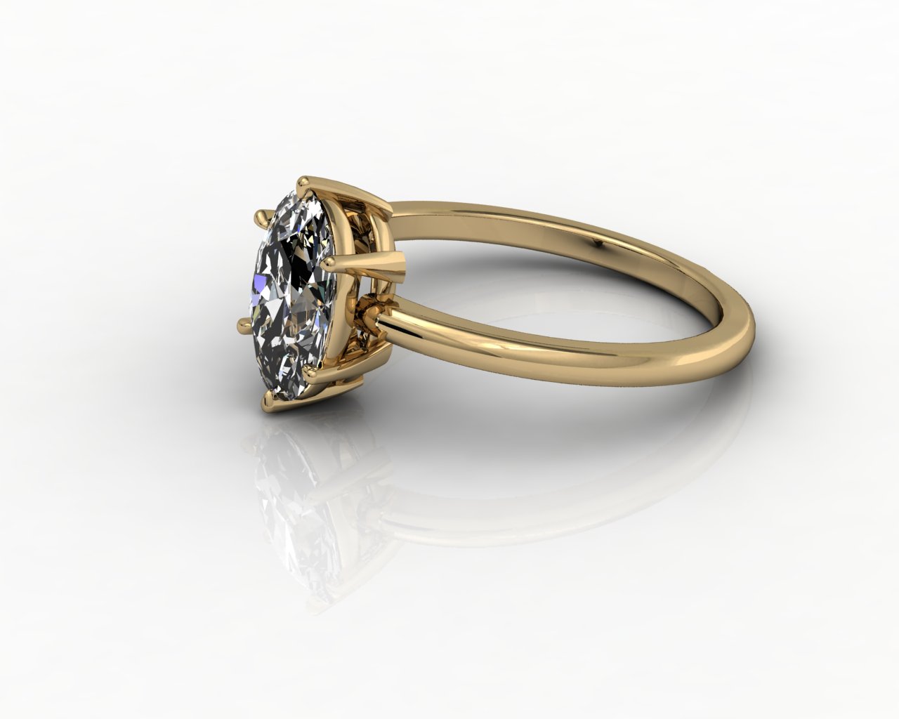The ring contains a 1ct oval diamond (minimum specifications: H, VS) in a 6 claw setting.