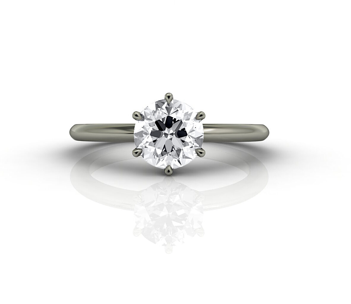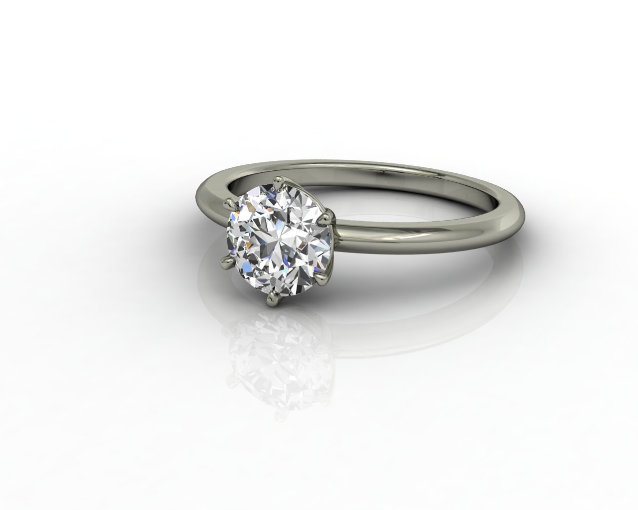 This solitaire ring contains a 1ct round brilliant diamond (minimum specifications: H, VS) in a 6 claw setting.